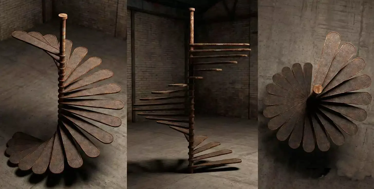 This industrial metal spiral staircase is designed with a strong and realistic structure, suitable for architectural visualization, games, and cinematic scenes. The model was initially created in SketchUp and refined in Blender 3.4, where high-quality PBR textures were applied to achieve a realistic metal surface.