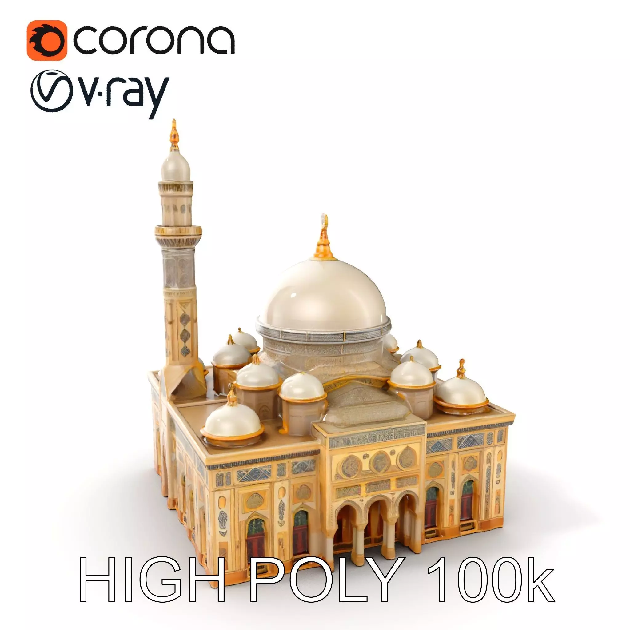 This highly detailed 3D model pack features an intricately designed mosque exterior. Covering three levels of detail, including low-poly (1000 triangles) for mobile use, mid-poly (10,000 triangles) for environment building, and high-poly (100,000 triangles) for production rendering, this model is suitable for various applications such as architectural visualization, game development, virtual reality experiences, and cinematic productions.