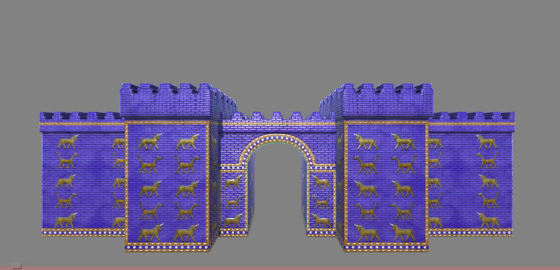 Historical Notes:The Ishtar gate was constructed around 575 in the city of Babylon. King Nebuchadnezzar II ordered that the gate be constructed and dedicated it to the Babylonian goddess Ishtar. The Three figures on the gate represent Mushussu(Dragons), Aurochs(Bulls) and lions which represent Mesopotamian gods. The ruins of Babylon are in modern day Iraq.