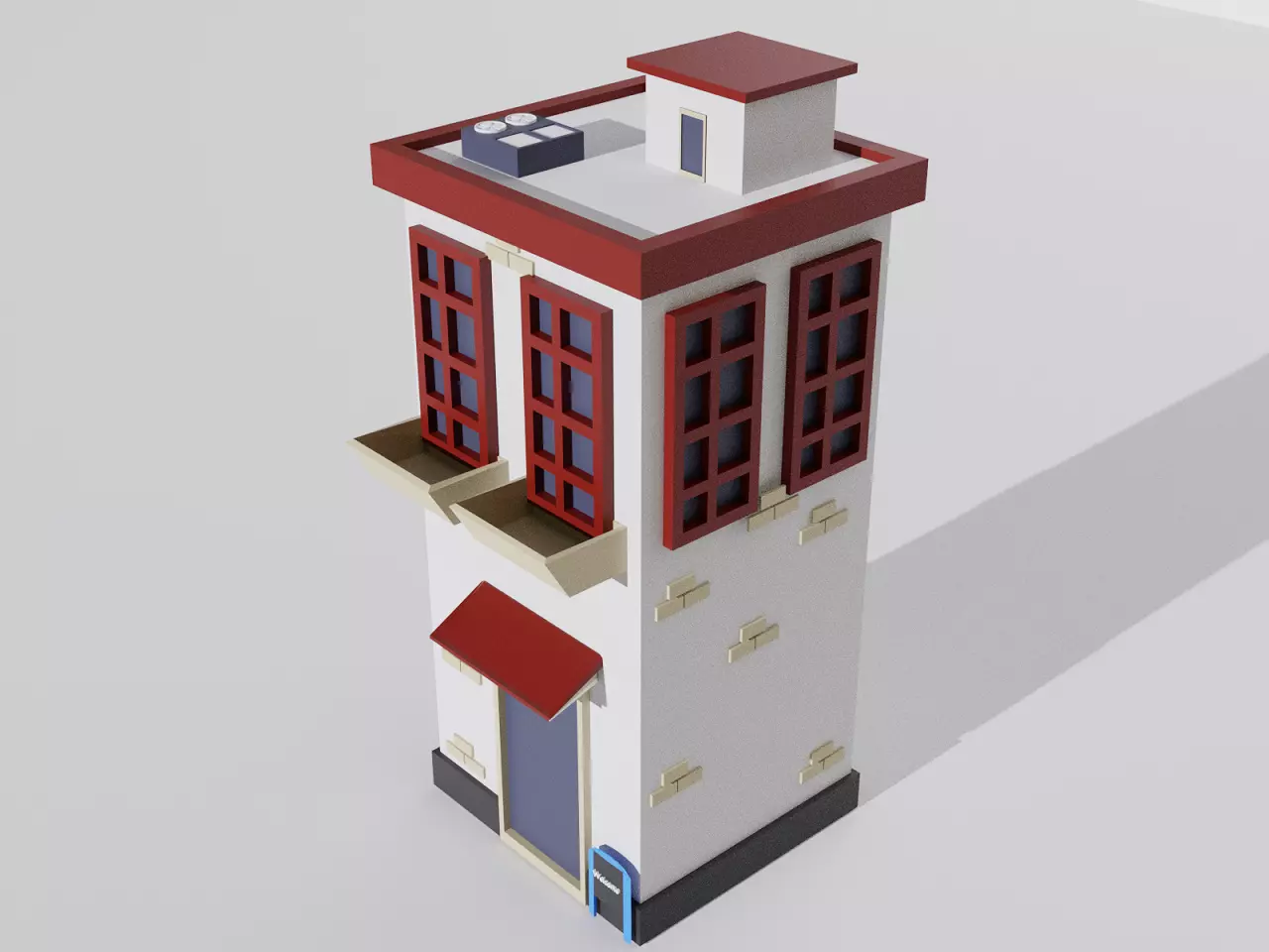 The model has material settings that define how surfaces look (color, shine, transparency, etc.).