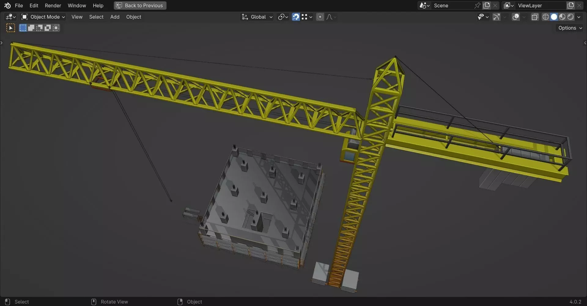 This pack is based on a construction site theme. It includes Scaffolding with braces, elements and walkways ; a crane separated in 3 meshes (cables, cabin windows and main structure), and of course the building in construction also separated in multiple meshes to add decals or materials on them (concrete on main building, metal on iron bars and ladders, transparency on the cabin windows...).