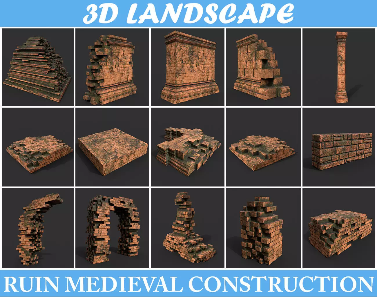 Low poly Terracotta Construction Pack 190923 Low-poly 3D model