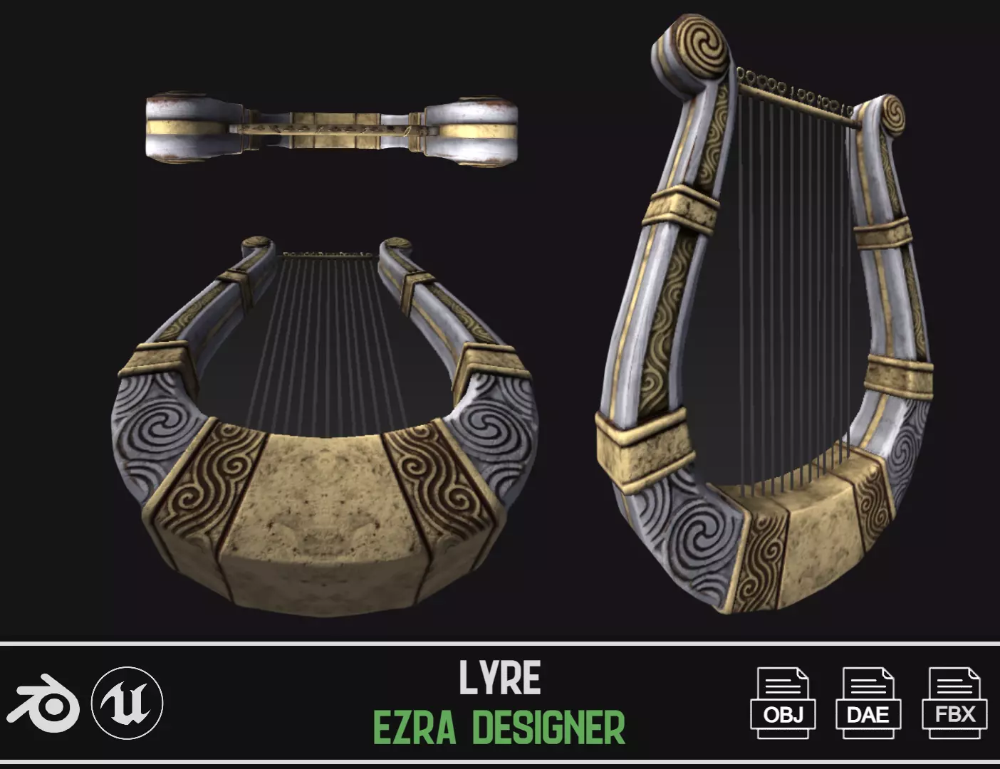Elevate your artistic endeavors with our exquisitely detailed 3D model of a classical lyre. Crafted to perfection, this model captures the essence of the ancient musical instrument, providing a touch of history and charm for your digital projects. Whether you're a music enthusiast, a history buff, or a 3D artist, this lyre model is a captivating addition to your collection.