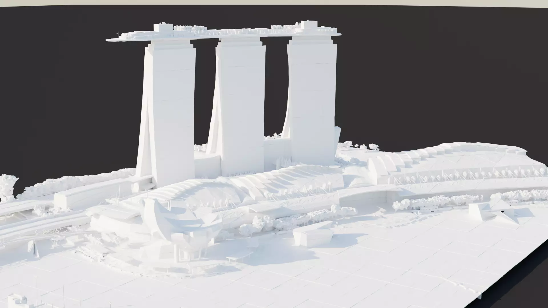 Marina Bay Sands is an unignorable and iconic presence in the Singaporean skyline. Designed by renowned architect Moshe Safdie, this integrated resort complex is a testament to visionary design and engineering.Its three distinctive towers, topped by a spectacular sky park with a seemingly gravity-defying infinity pool, are a visual masterpiece, redefining luxury and urban living. The resort complex combines world-class accommodations, entertainment, shopping, and culinary experiences, all seamlessly integrated within its innovative design.The Marina Bay Sands is not just a building; it's an urban destination that reflects Singapore's commitment to innovation and excellence. Its breathtaking architecture, complete with the iconic boat-shaped SkyPark, offers a panoramic view of the city, providing a unique and unforgettable perspective on this cosmopolitan hub. High quality, block models - clay models available, 3D print ready and available in multiple formats: .blend, .fbx, .obj, .stl
