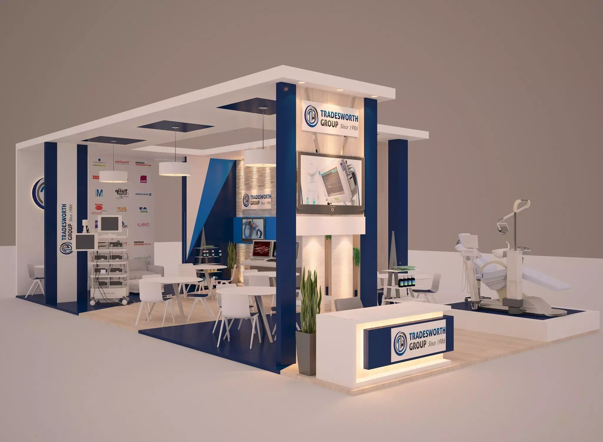 3D Model of Medical & Pharmaceutical Exhibition Stall, This is a fully ready textured interior scene, ready to render with V-ray. Inside the Zip file, you will find texture, 15-22 versions of max and FBX files. It has a detailed design that allowed closeup renders. The Medical and Pharmaceutical Exhibition Stall 3D model is a highly detailed and realistic representation of an exhibit booth for a medical or pharmaceutical company. The model features a spacious and modern design, with a sleek and professional look. The large back wall showcases the company's branding and messaging, while the product displays and interactive kiosks provide a platform to demonstrate the company's offerings. The model also includes comfortable seating areas and a reception desk, making it the perfect space for meeting with clients and stakeholders. The attention to detail and realistic textures make this 3D model an ideal tool for visualizing and planning a successful exhibition booth. Whether used for presentations or virtual walkthroughs, this model will help bring your company's vision to life.