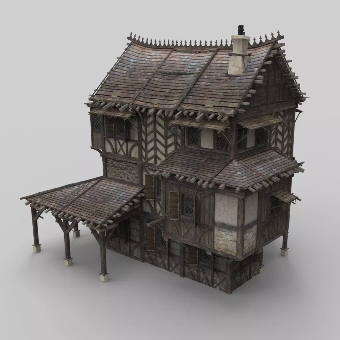 Model of fantasy medieval house. Unit system is set to metric. Real-world scale. 3ds max 2015.All system LODs and collision.