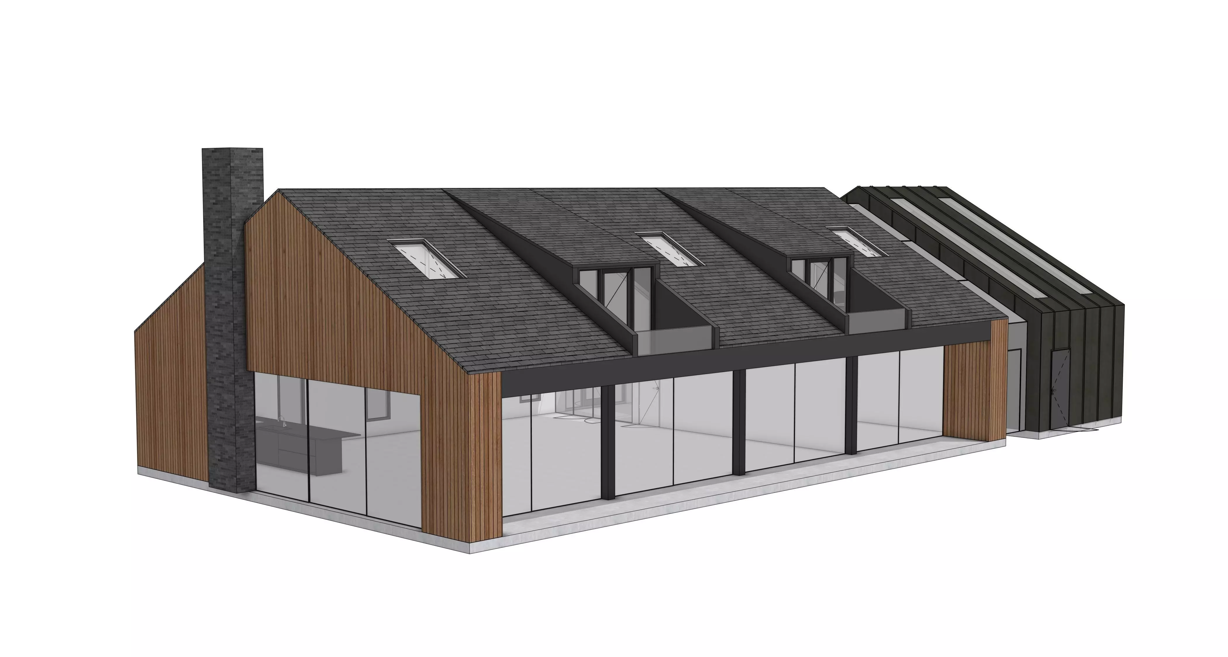 This modern barndominium style house is a high quality architectural 3D model designed for architectural visualization, real estate presentations and environment scenes.