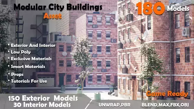 Welcome to the introduction video of Modular City Buildings AssetIn This Asset we create 180 models For building creationModularAs you can see, we built walls in standard sizes and we can build all kinds of buildings by putting them together.We also built other types of walls, and they are also modular and can be used as well.In this collection, most of the objects are modular and, as you can see, they can be easily connected together.PropsWe also made high-quality props in this collection that you can use.The models are all unwrapped and textured.MaterialsWe created our own materials for walls that have many capabilities, such as changing color patterns and surface damage.