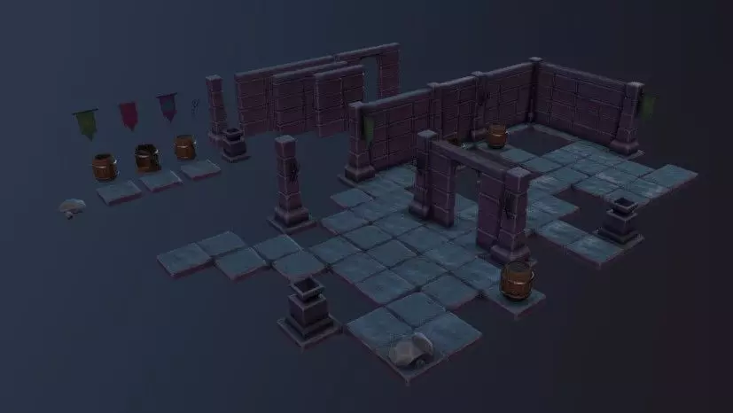 Over 150 individual models, including:Walls, floors, and ceilings in multiple styles.Arches, doors, gates, and windows.Pillars, stairs, and platforms.Props like barrels, crates, treasure chests, and torches.High-Quality Textures
