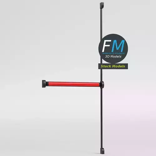 Sleek modern panic bar assembly 3D Model, featuring a horizontal red push bar mounted on a minimal black vertical frame, ideal for doors in commercial or emergency-exit environments. 8 objects (push bar, case, right cap, left cap, top rod, bottom rod, top latch, bottom latch; so, you can easily move or delete some elements, as shown in preview images), sharing the same non overlapping UV Layout Map, Material, and PBR Textures set. Production-ready 3D Model with non overlapping UV Layout map provided in the package. PBR Materials and Textures (Metallic Workflow: Base Color, Metallic, Roughness, Normal) embedded in the Blend, FBX, and GLB files.Easily customizable: UV unwrapped geometries; UV Layout maps provided in the package as png with alpha images.Quads-only geometry.Made with Blender 4.5 LTS with Cycles Principled BSDF (PBR, Metallic Workflow) Material, then exported to other formats (OBJ, FBX, GLB; FBX and GLB have embedded textures).Promo images: some renderings made with Cycles for Blender, plus Wireframes and Blender screenshots (Object Mode, Edit Mode with UVs).Formats included: FBX with embedded PBR Textures (Metallic Workflow: Base Color, Metallic, Roughness, Normal), GLB with embedded PBR Textures (Metallic Workflow: Base Color, Metallic, Roughness, Normal), OBJ; scenes: BLEND (with Cycles Principled (PBR) Materials); other: 16-bit PNGs with Alpha.8 Objects (meshes), 1 PBR Material, UV unwrapped (non overlapping UV Layout map provided in the package).UV Layout maps and Image Textures resolutions: 2048x2048.Polygonal, QUADS-ONLY, 2122 vertices, 2086 quad faces (4172 tris).Real world dimensions; scene scale units: METERS in Blender 4.5 LTS (that is: Metric with 1.00 scale).Uniform scale object (scale applied in Blender 4.5 LTS).PBR Textues included: in a zipped folder, you'll find the PBR Textures set (as 16-bit PNGs with Alpha).IMPORTANT --- Main renderings made with Blender 4.5 LTS + Cycles using an HDR Environment Texture Image which is NOT provided in the package!