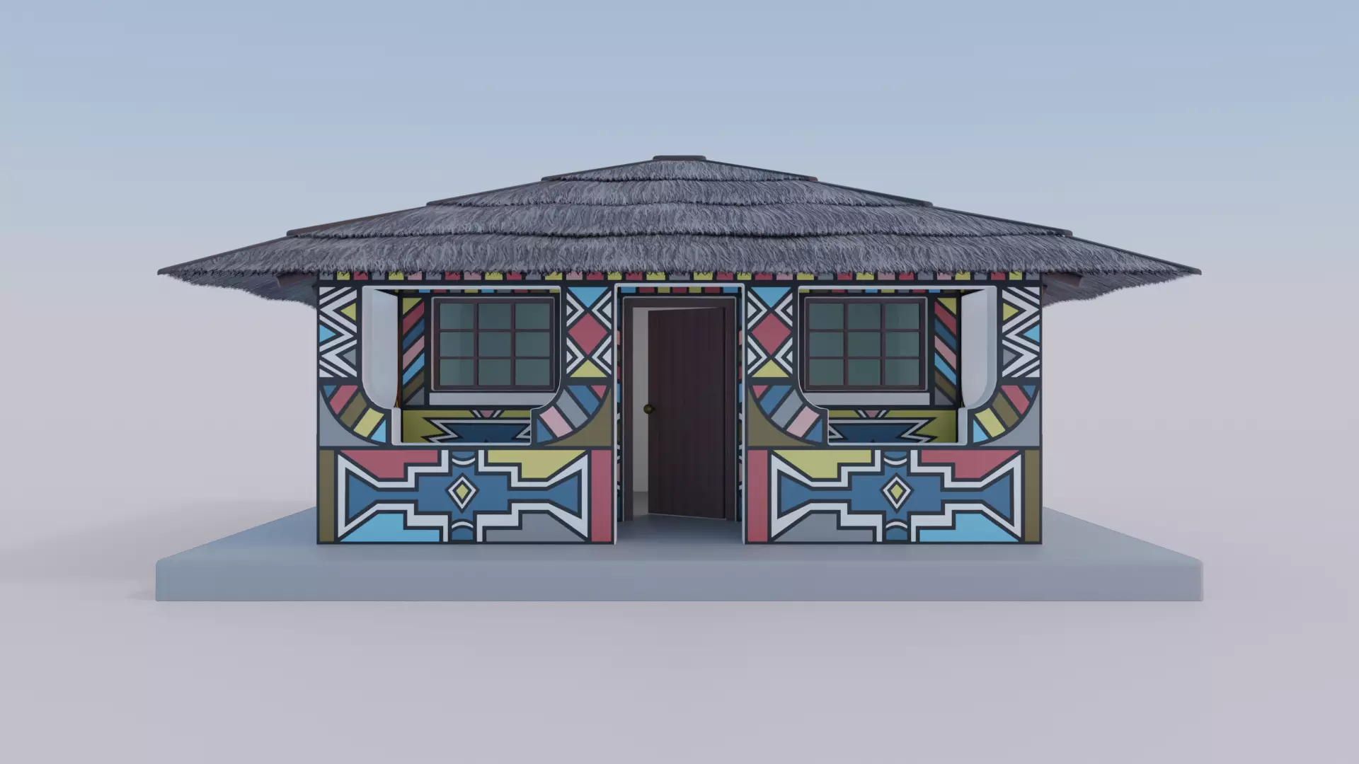 Ndebele decorated structure to use as a shop or small cottage. Paint design inspired by the wonderful Ndebele artist, Dr Esther Mahlangu.