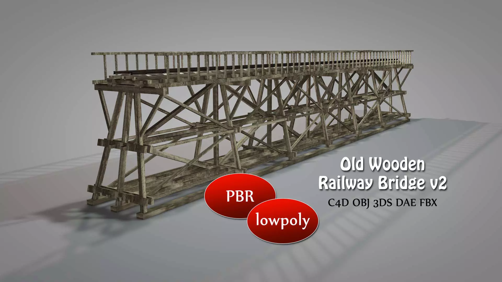 This is a nice looking and detailed wooden railway bridge model (like first version) for western fans and gamers. This model is suitable for the game engines because of the low polygon structure.
