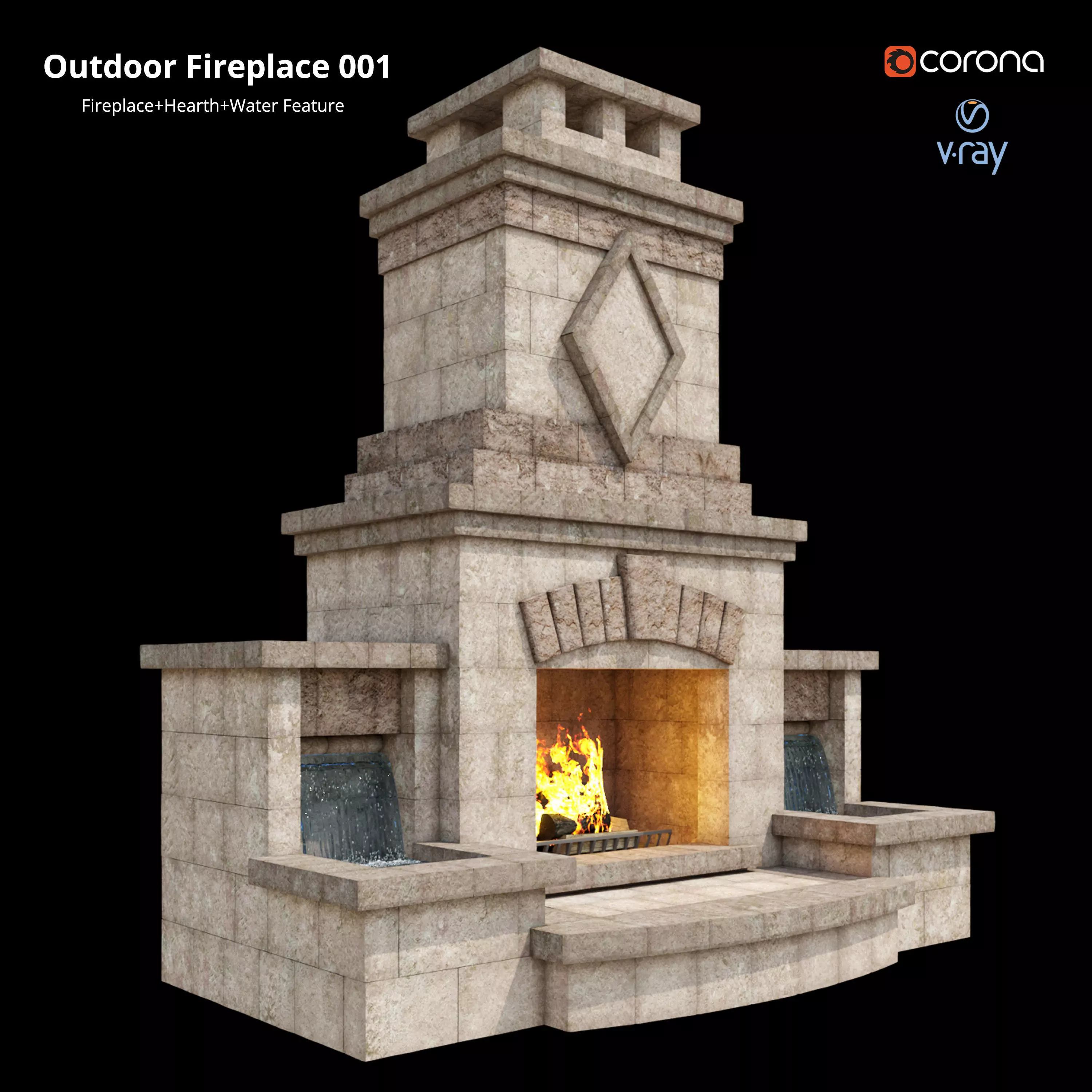 the archive file has model of a Ethnic Outdoor Fireplace (Fireplace + Hearth + Water Feature) also in the archive there are perspectives.Export File: FbxVray version: V-Ray 4.10.02Corona version: 5