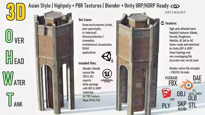 Uses Physically Based Rendering materials, which give the model realistic lighting and surface properties.