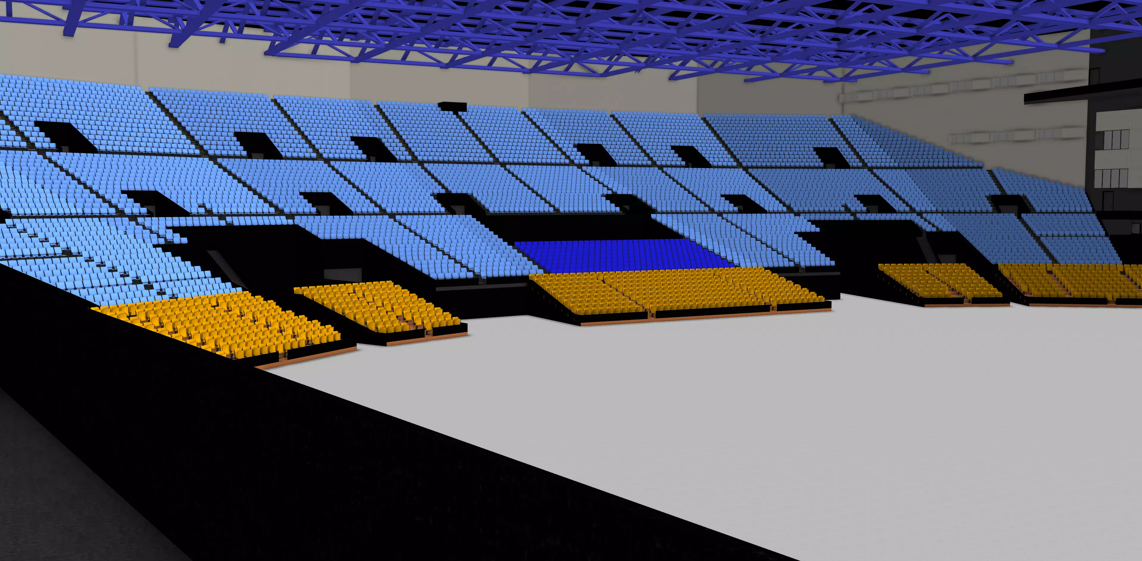 On its own, Palais Nikaïa has seats for between 1,500 and 6,250 persons depending upon configuration, with an upwards maximum of 9,000 capacity including those standing. However, in a unique arrangement, it is located next to the outdoor Stade Charles-Ehrmann, with sliding glass doors to operate between them, and the two in combination can be used to host very large concerts with up to 50,000 or more in attendance.
