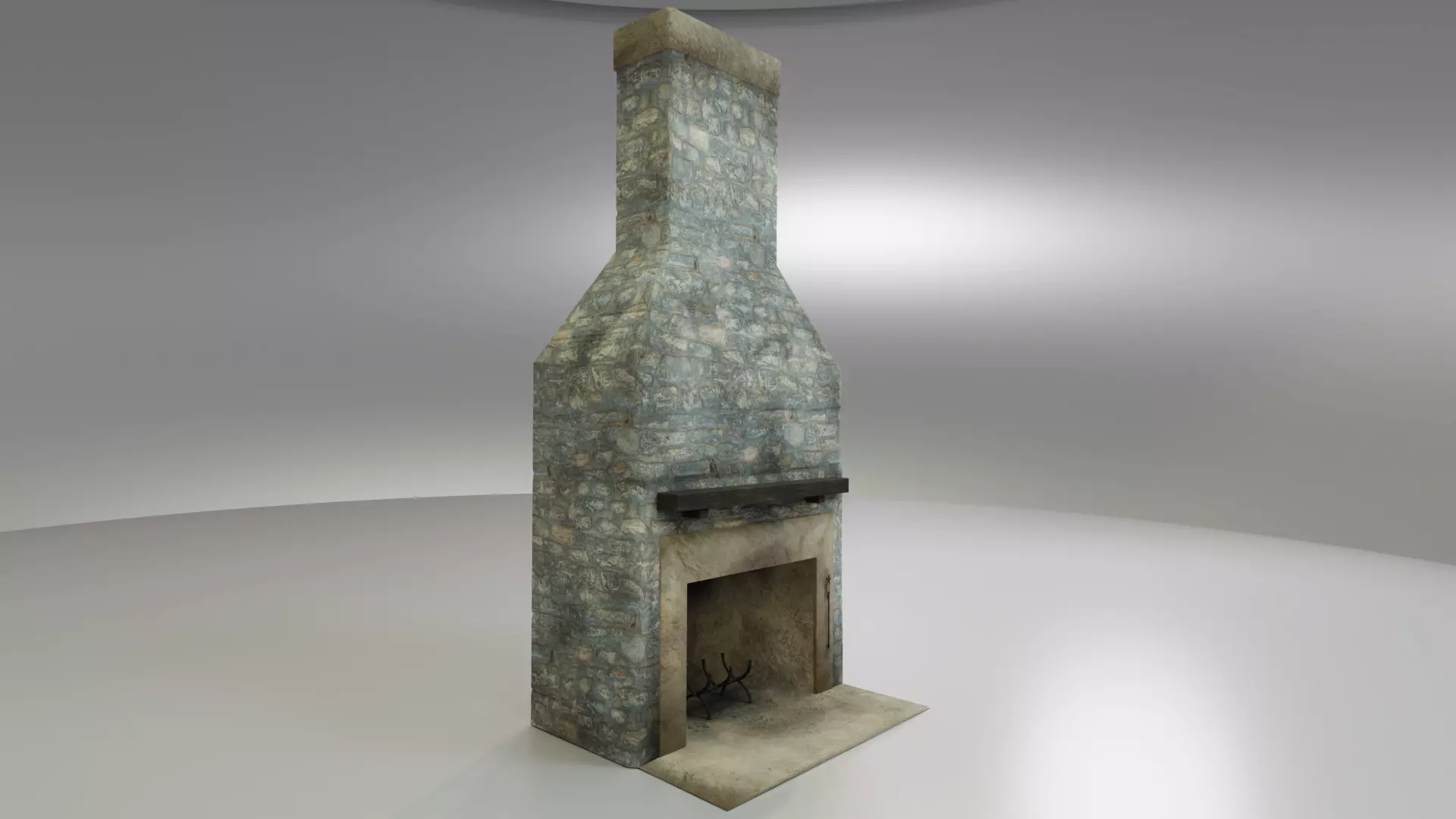 Rustic Stone Fireplace with Chimney Low-poly 3D model