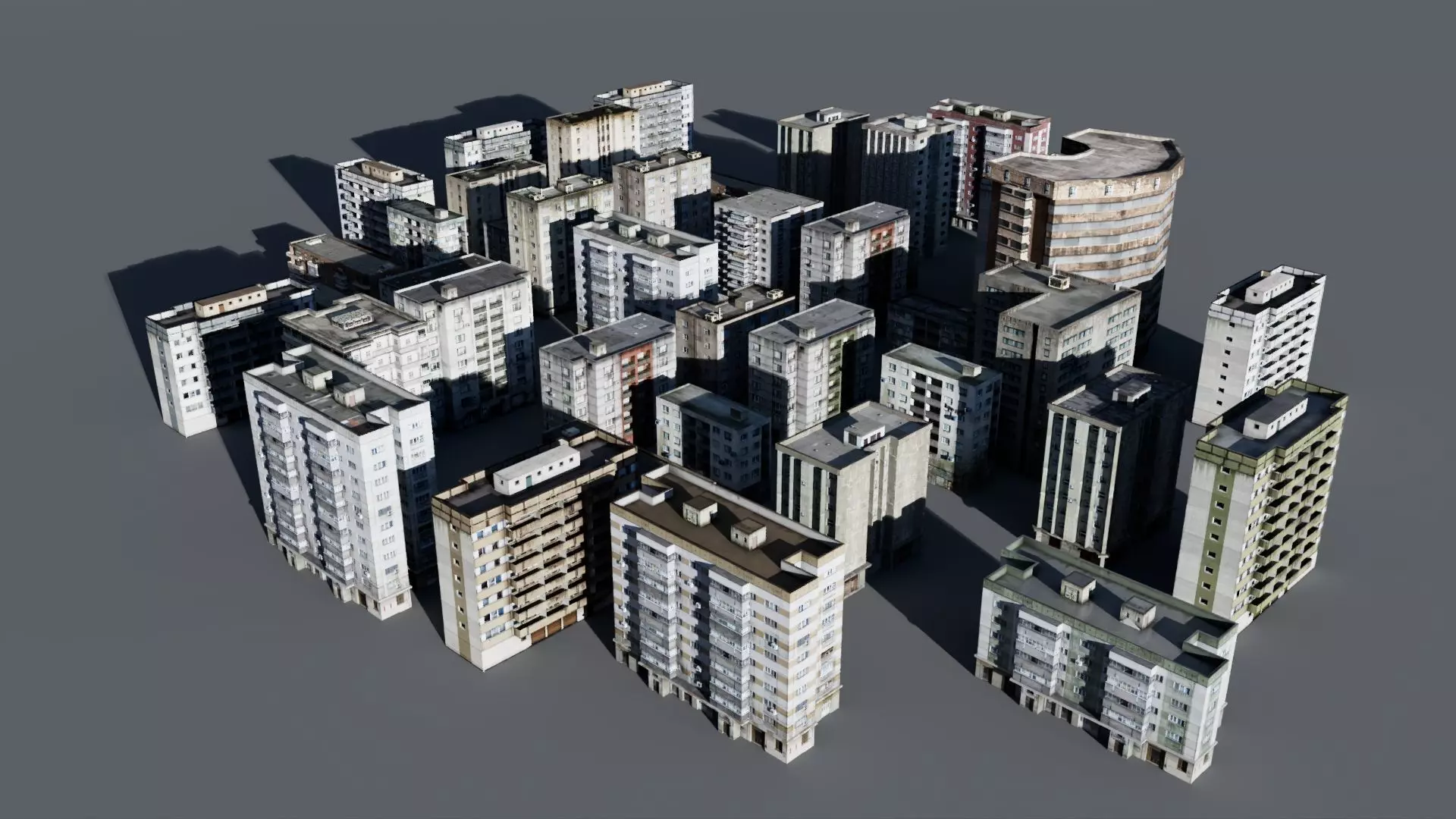 Photo Based Generic Ukraine City/Buildings Low Polydifuse map, 42 Geometry variations.Obj, Fbx, .mb 2026.....76257 Faces (all buildings)
