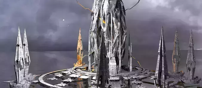 Pillars of Hercules Sci fi City towers Low-poly 3D model