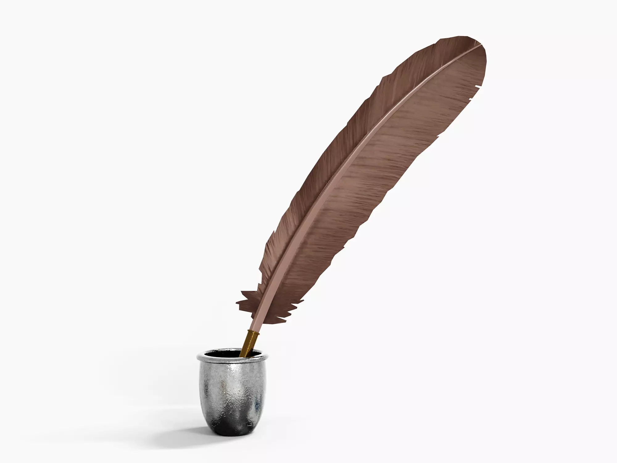 A quill is a writing tool made from a moulted flight feather (preferably a primary wing-feather) of a large bird. Quills were used for writing with ink before the invention of the dip pen/metal-nibbed pen, the fountain pen, and, eventually, the ballpoint penInk bottle and quillAs with the earlier reed pen (and later dip pen), a quill has no internal ink reservoir and therefore needs to periodically be dipped into an inkwell during writing. The hand-cut goose quill is rarely used as a calligraphy tool anymore because many papers are now derived from wood pulp and would quickly wear a quill down.[citation needed] However it is still the tool of choice for a few scribes who have noted that quills provide an unmatched sharp stroke as well as greater flexibility than a steel pen.