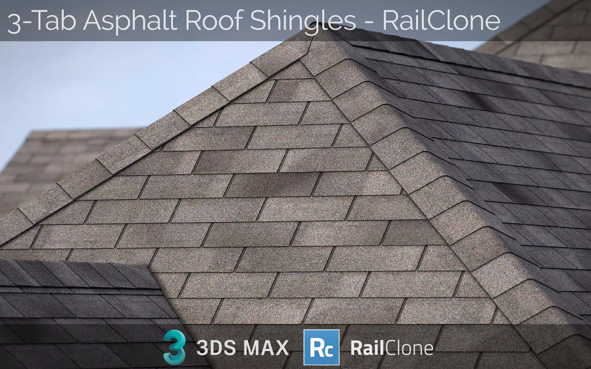 3-Tab asphalt shingles RailClone preset (RailClone Pro 3.2.0, 3dsmax 2014 file)