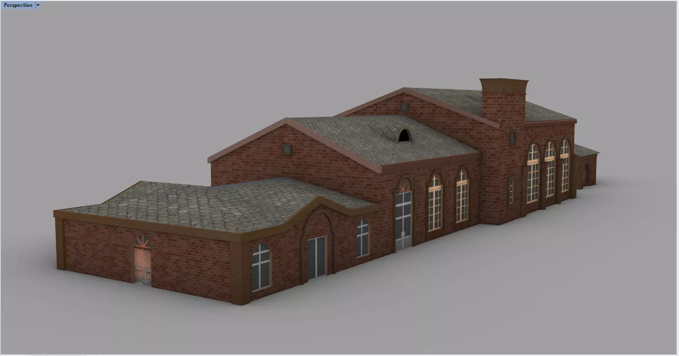 The model has material settings that define how surfaces look (color, shine, transparency, etc.).