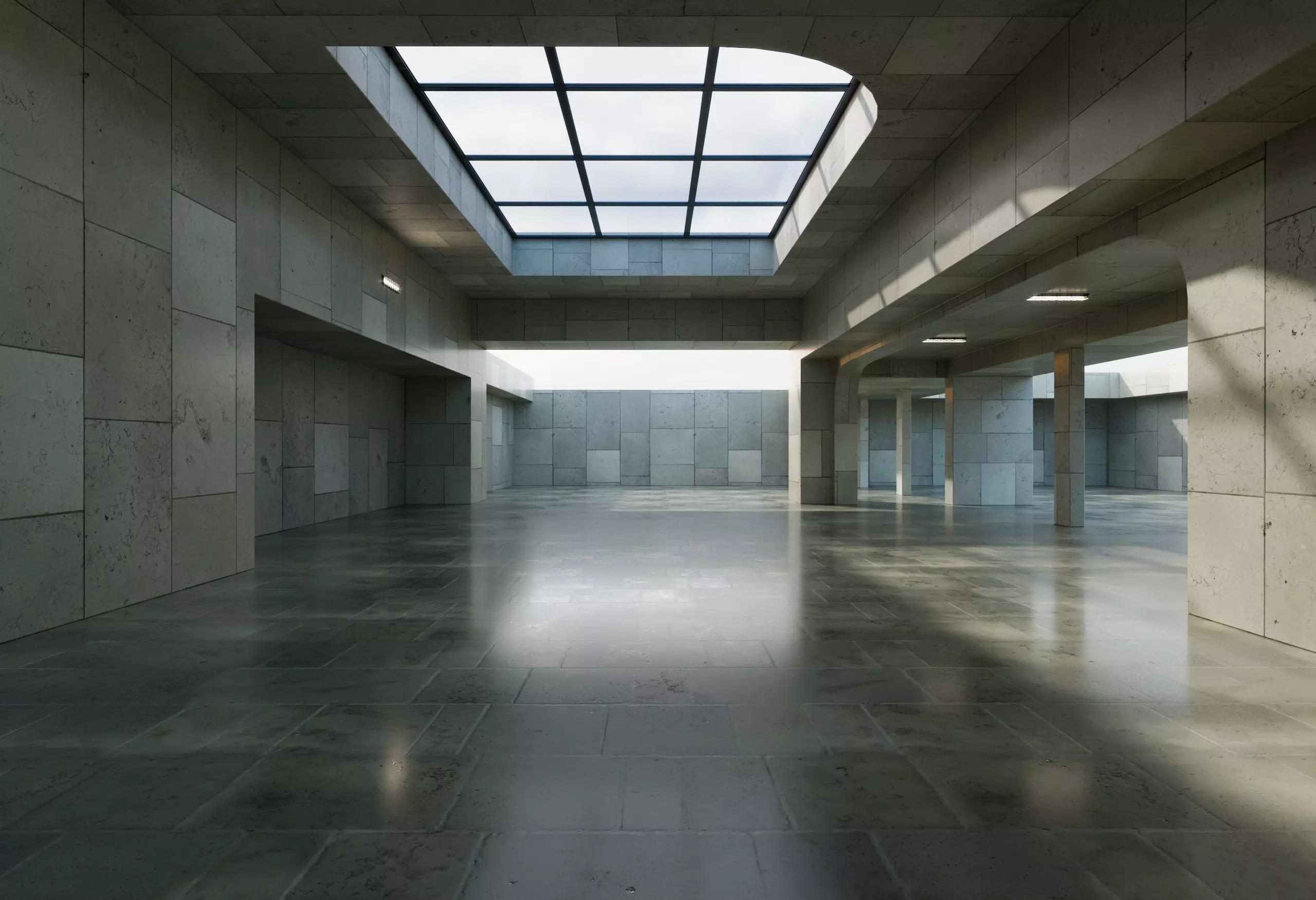 Daylight Concrete Atrium Scene - Architectural Background - V3U1