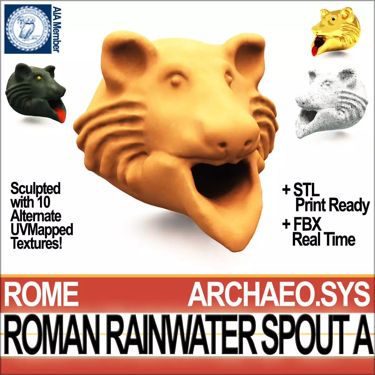 Roman Rainwater Spout A. [Sculpted] C4D, 3DS, OBJ, VUE6to14, STL, FBX Real-Time!