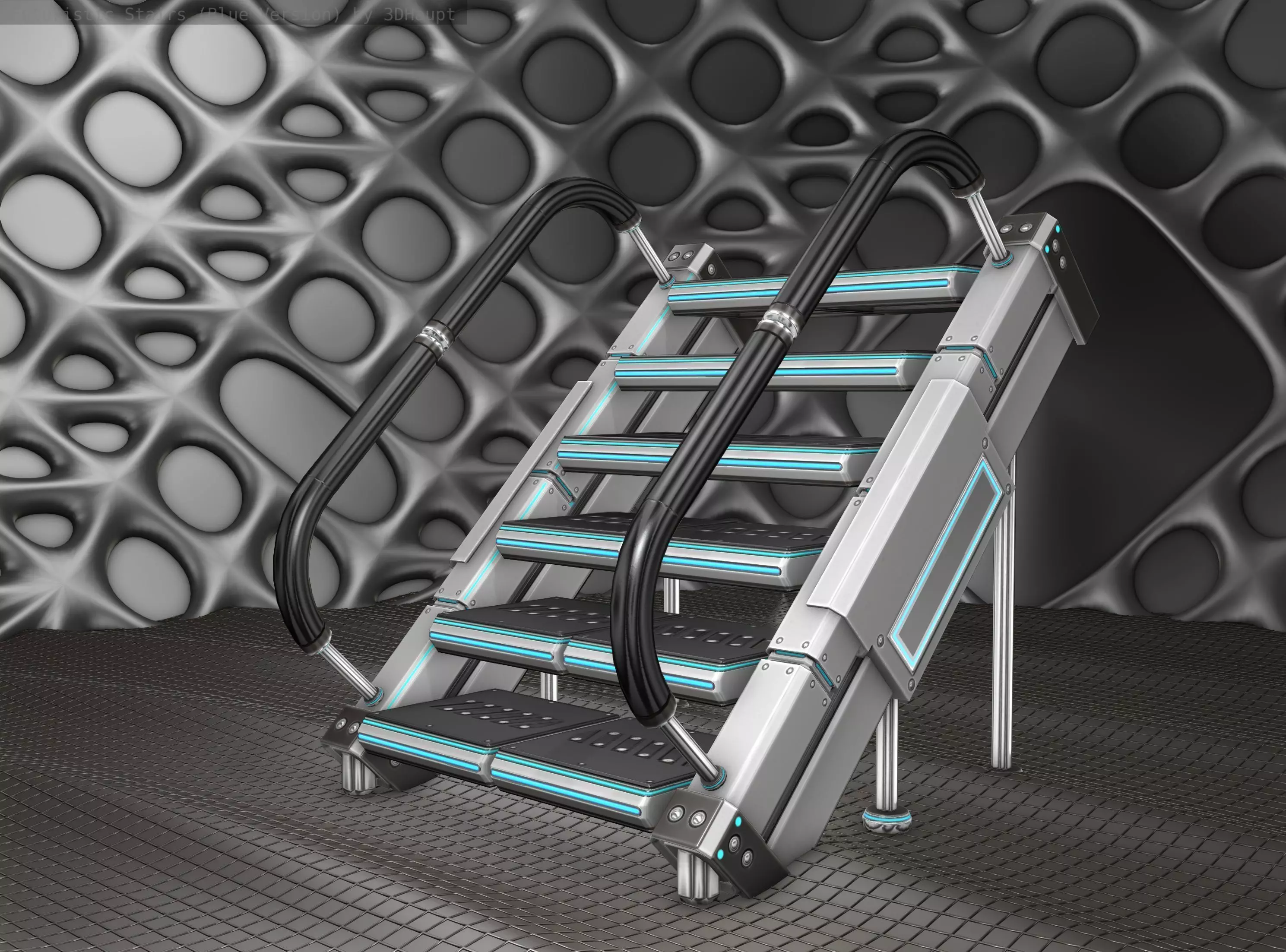 Sci-Fi Stairs - 8 - Silver Blue Neon Light Version Low-poly 3D model