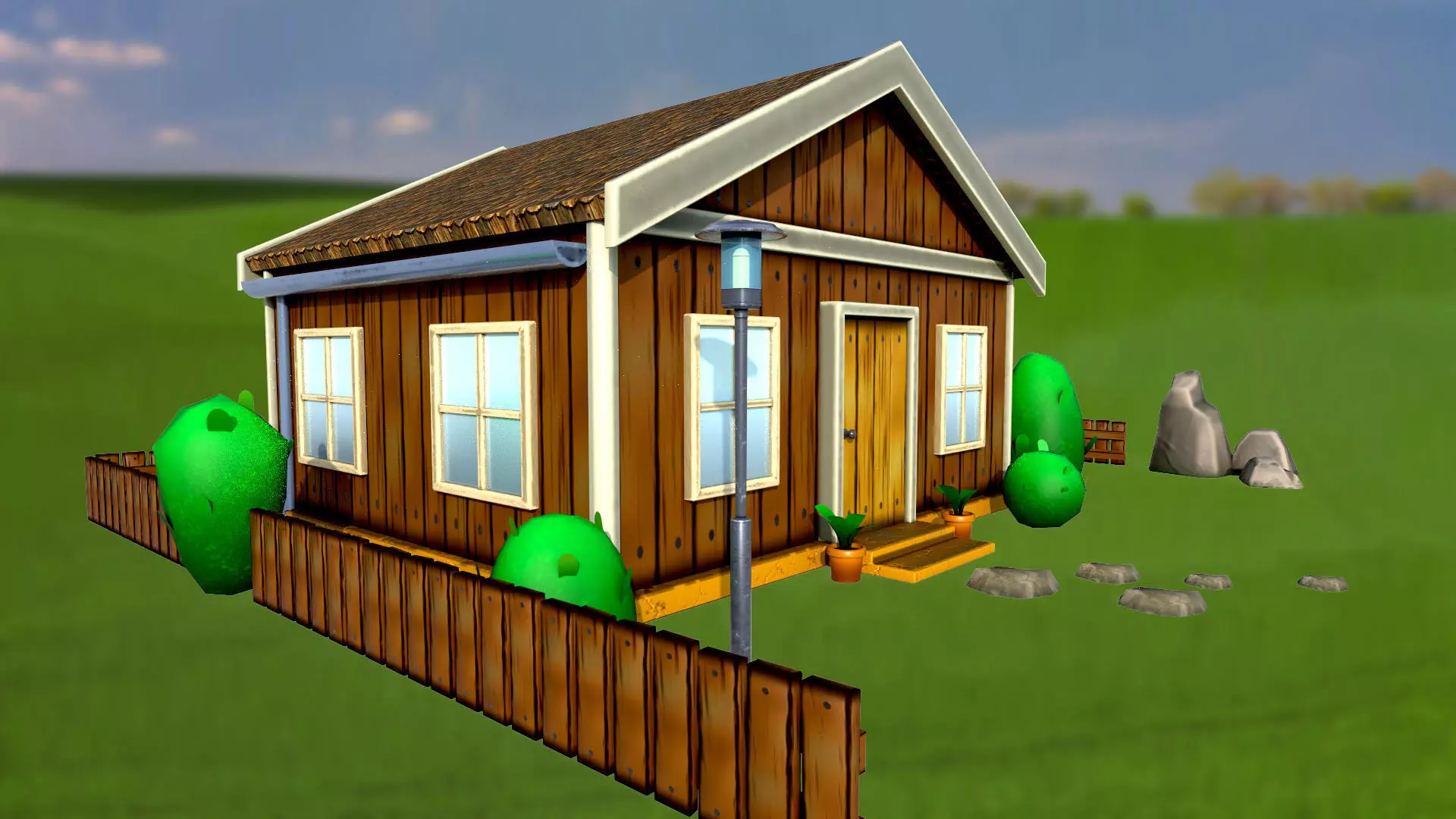 Set of stylized house bushes trees well stones fence PBR low-poly game readyall models are separatedPolygons 294Vertices 310Textures_2K_4K -JPEG,PNG (Unreal Engine 4)