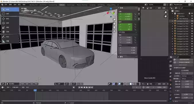 The model has material settings that define how surfaces look (color, shine, transparency, etc.).