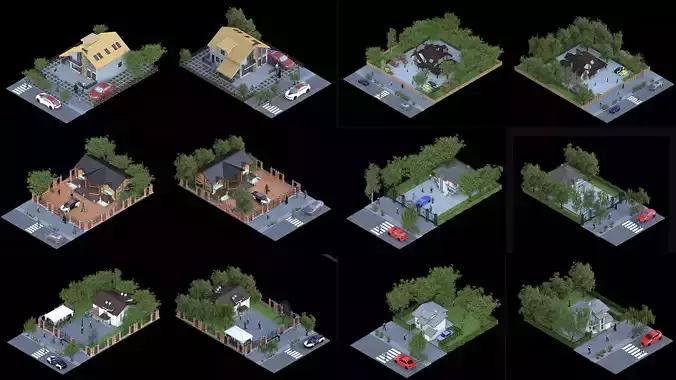 Each villa comes complete with customizable features, ensuring adaptability to your specific project requirements. The collection also includes meticulously optimized and professionally textured 3D models, ready to be seamlessly integrated into popular 3D software and game engines, providing you with a hassle-free experience.