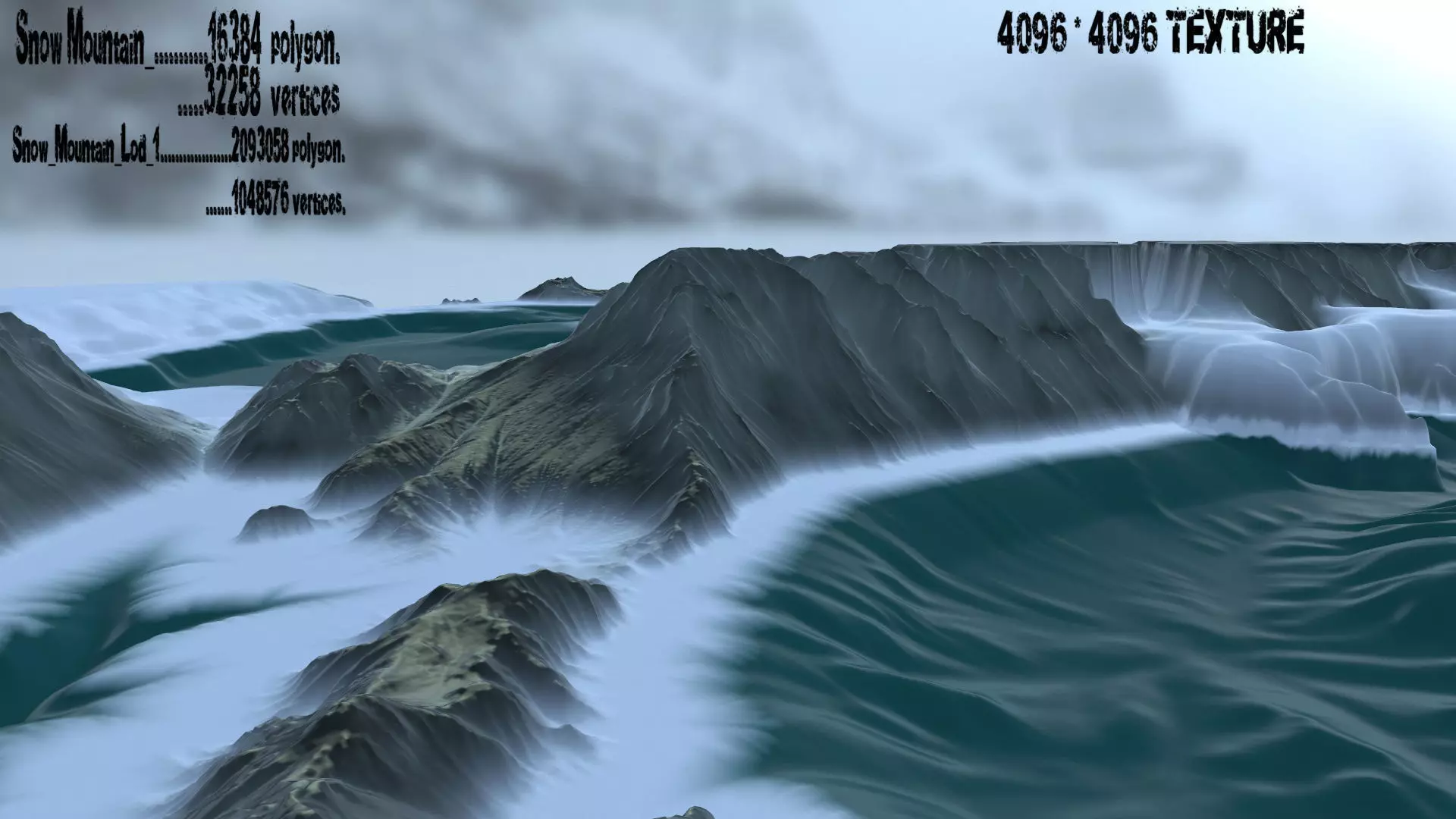 Snow_Mountain........................32258 polygon. ......16384 vertices.Snow_Mountain_Lod_1.................2093058 polygon. .....1048576 vertices.