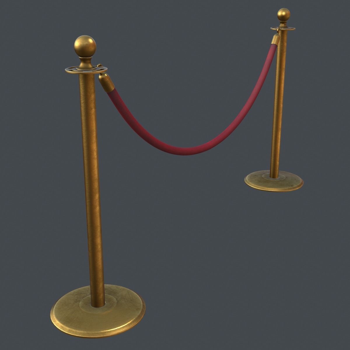 High detail stanchion and velvet rope. Fully unwrapped with mirrored UVs from centre of the rope. Half of the model has non-overlapping UVs. This model can be used for close-up renders.