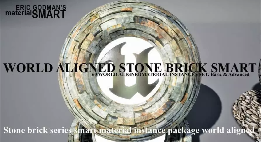 A Set of 60 stone brick materials created based on Material Smart: World Aligned Brick Series, featuring texture map customizations, grunge, normal Mip Bias, tessellation, and world aligned options for PC/Mobile. Before you buy, please check the optimization version: Optimized Stone Brick World Aligned Materials: same featured materials with less than half texture loading capacity, treading off its high texture map customization options.This package contains a set of 60 smart material instances with high customizations. 30 advanced/basic material instances for each PC/Mobile application developments. All material instances are created with two master materials from Material Smart: World Aligned Brick SeriesBasic material instances featuring: 1) BC, R, and N texture map options.2) Full UV optionsAdvanced material instances featuring:1) BC, S, R, H, N, and AO texture map options. 2) Full UV optionsAdditional functionalities featuring:1) World Aligned toggle options on XY|XYZ|Z2) Grunge/Normal Mip Bias option3) Tessellation options4) Simple/advanced S/R texture map option5) Individual UV options for Grunge/Normal Mip BiasFor more stone brick master materials, please check Material Smart: World Aligned Brick SeriesFeatures: • 30 material instances for Mobile application development (Basic)• 30 material instances for mid-to-high end PC/console application development (Advanced)• 90 texture maps for Mobile material instances in 2048 by 2048 resolution.• 180 texture maps for PC/console material instances in 4096 by 4096 resolution.• All texture maps replacement and fine-tune options.• World aligned options on XY | XYZ | Z• Tessellation can be fine-tuned and toggled on/off• Grunge option can be toggled on/off• Simple/advanced grunge distribution option• Simple/advanced specular selection• Simple/advanced roughness selection• Minor normal Mip bias can be toggle on/off• Specular texture/specular simulated from roughness selectionNumber of Master Materials: 2Number of Material Functions: 7Number of Textures: 275Number of Material Instances: 60Documents: Source textures cite and license can be found under the project folder at “Source Texture Cite & License”