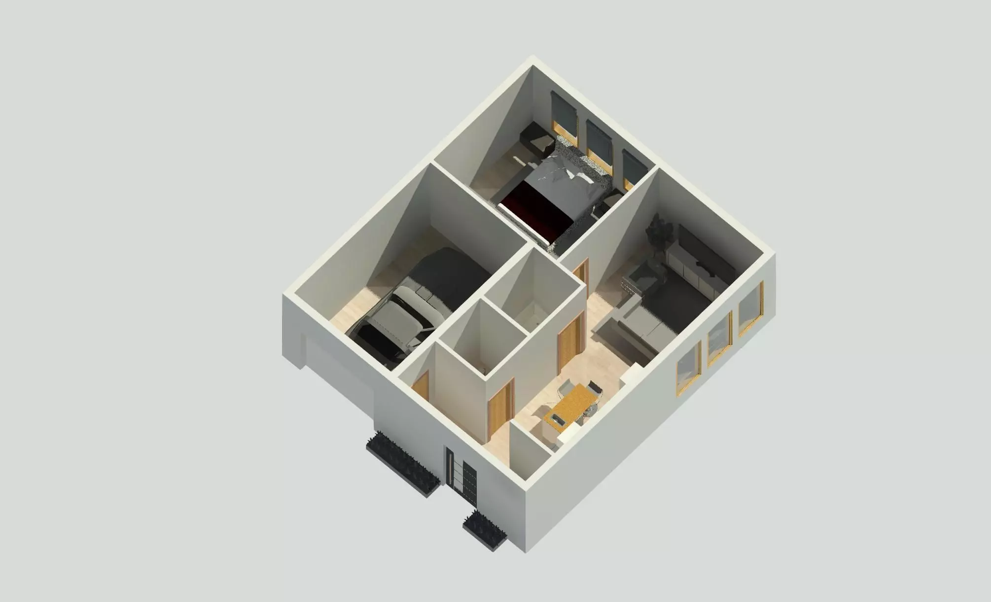 The model has material settings that define how surfaces look (color, shine, transparency, etc.).