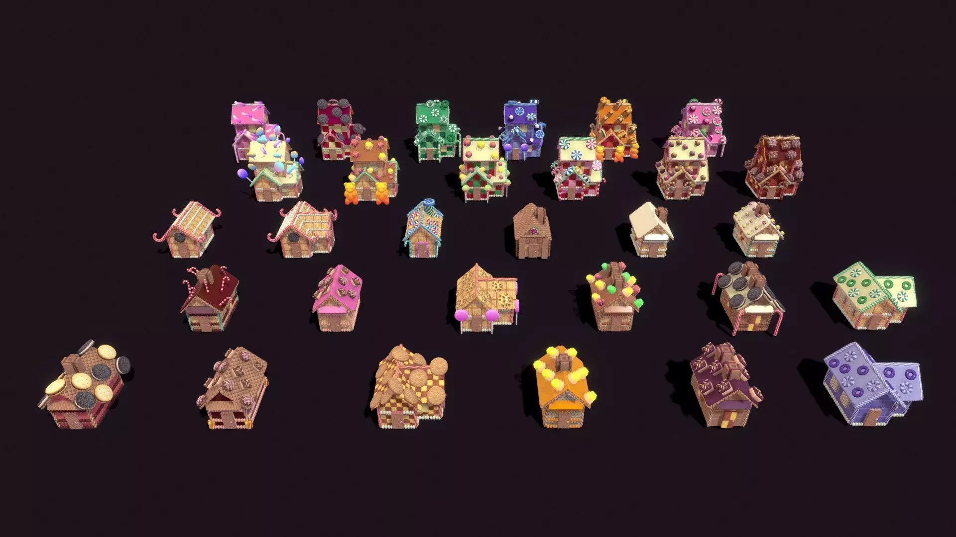 Stylish Candy Biscuit Architecture House Low-poly 3D model