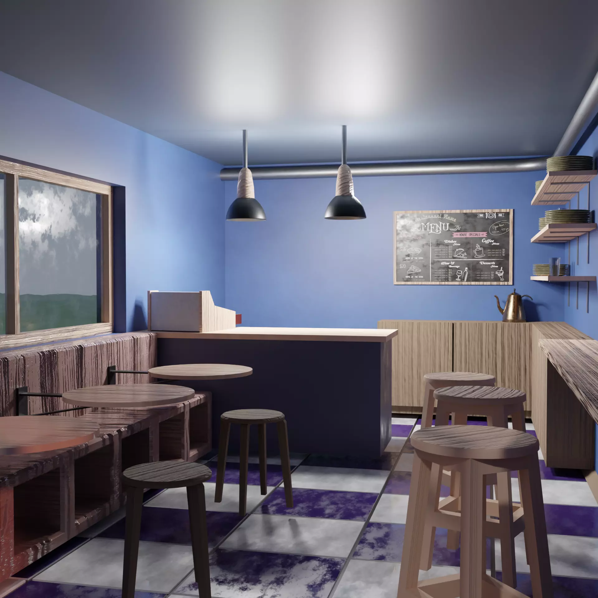 The model has material settings that define how surfaces look (color, shine, transparency, etc.).