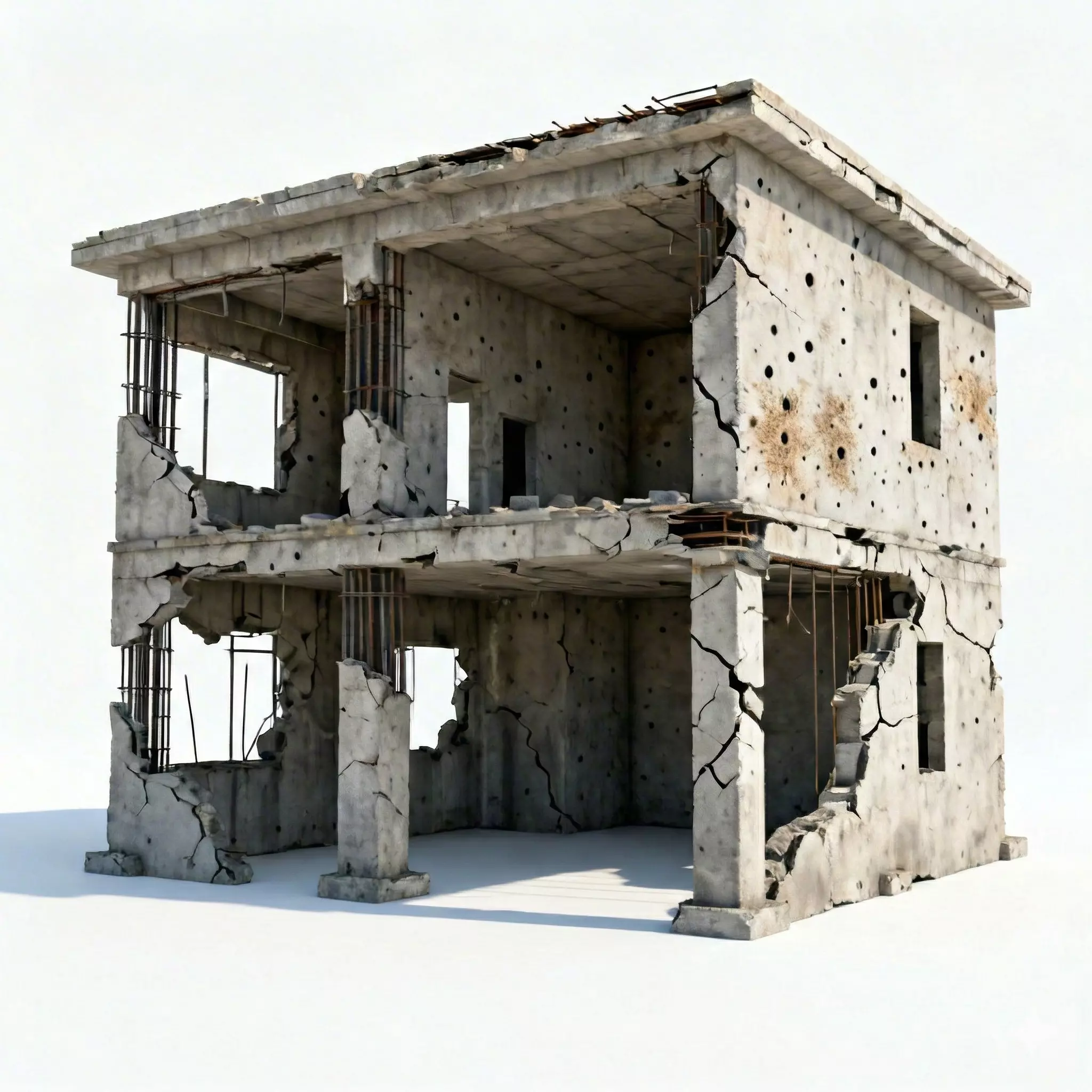 Files Included: FBX, GLB, OBJ, STL, ZIP (Textures).Quick Tip: The Exposed Rebar uses a separate metallic material. You can easily apply a Corrosion shader to the metal rods to make the building look like it has been abandoned for decades, or add a Wet shader to the concrete for a dark, rain-slicked city atmosphere.