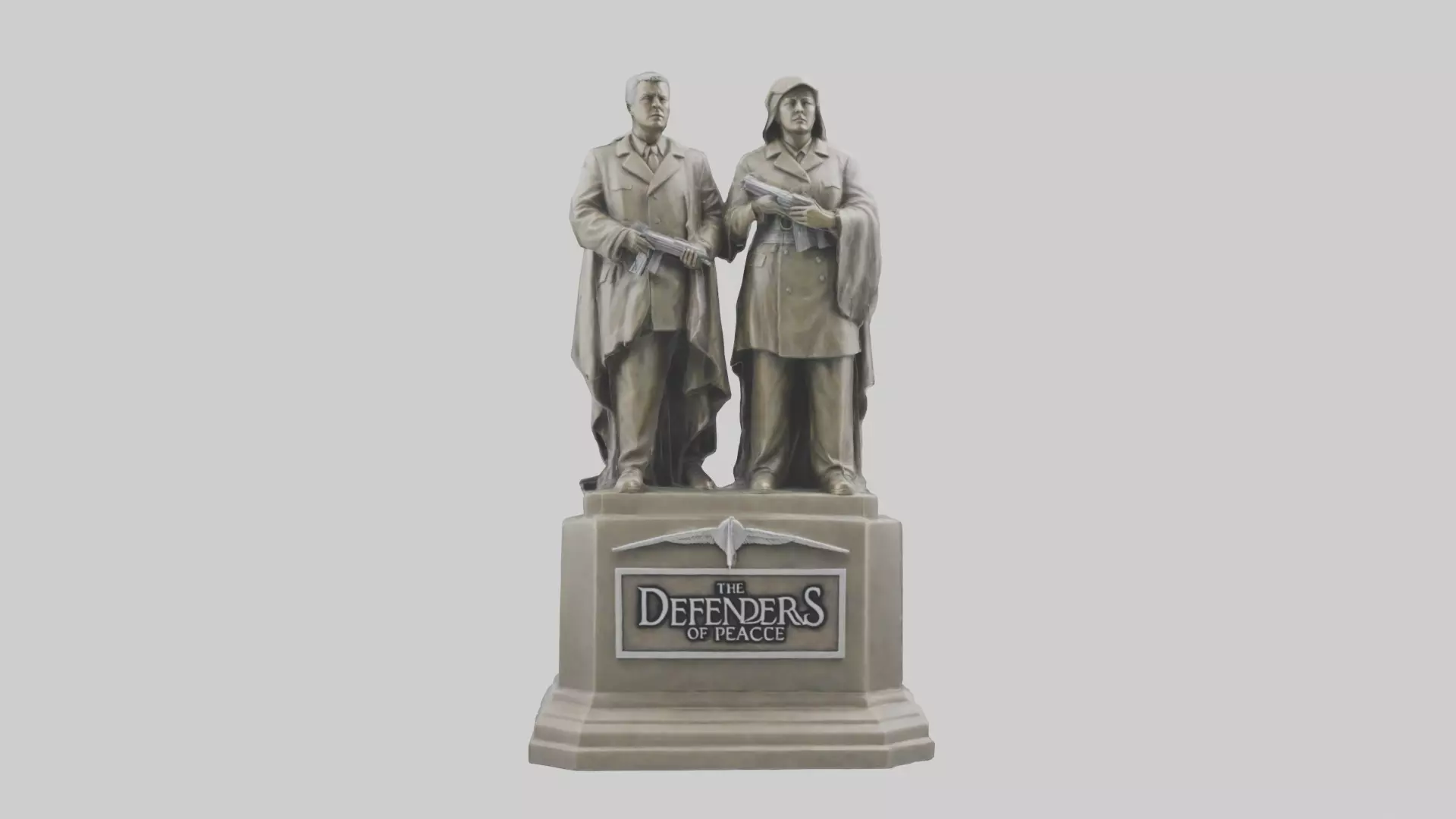 Keywords: Defenders of Peace, peace, harmony, statue, 3D model, justice, conflict resolution, protection, strength, symbolic, figures, weapons, serenity.