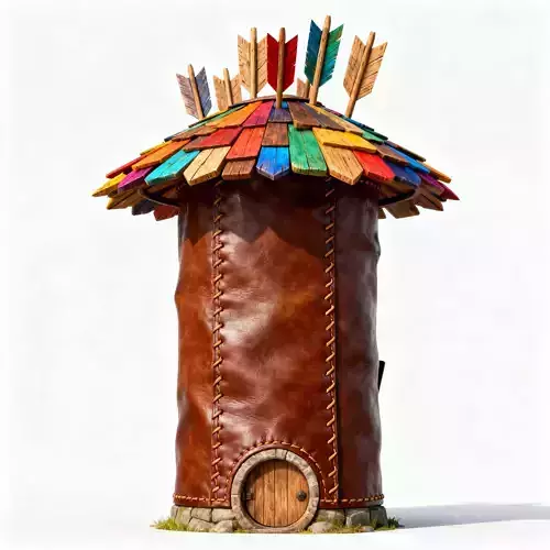 Files Included: FBX, GLB, OBJ, STL, ZIP (Textures).Quick Tip: The Giant Arrows and Rainbow Roof are separate mesh groups. You can easily remove the arrows to turn this into a standard Tribal Leather Hut or change the texture colors of the shingles to match a specific team or element in your game.