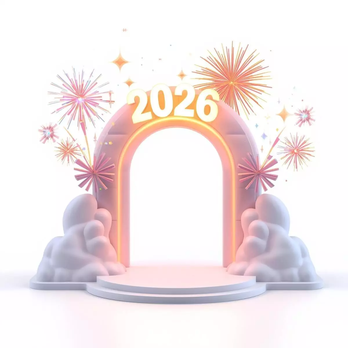 Tags new year, 2026, portal, gate, arch, celebration, festive, holiday, pink, fantasy, fireworks, sparkles, clouds, cartoon, stylized, prop, 3d model