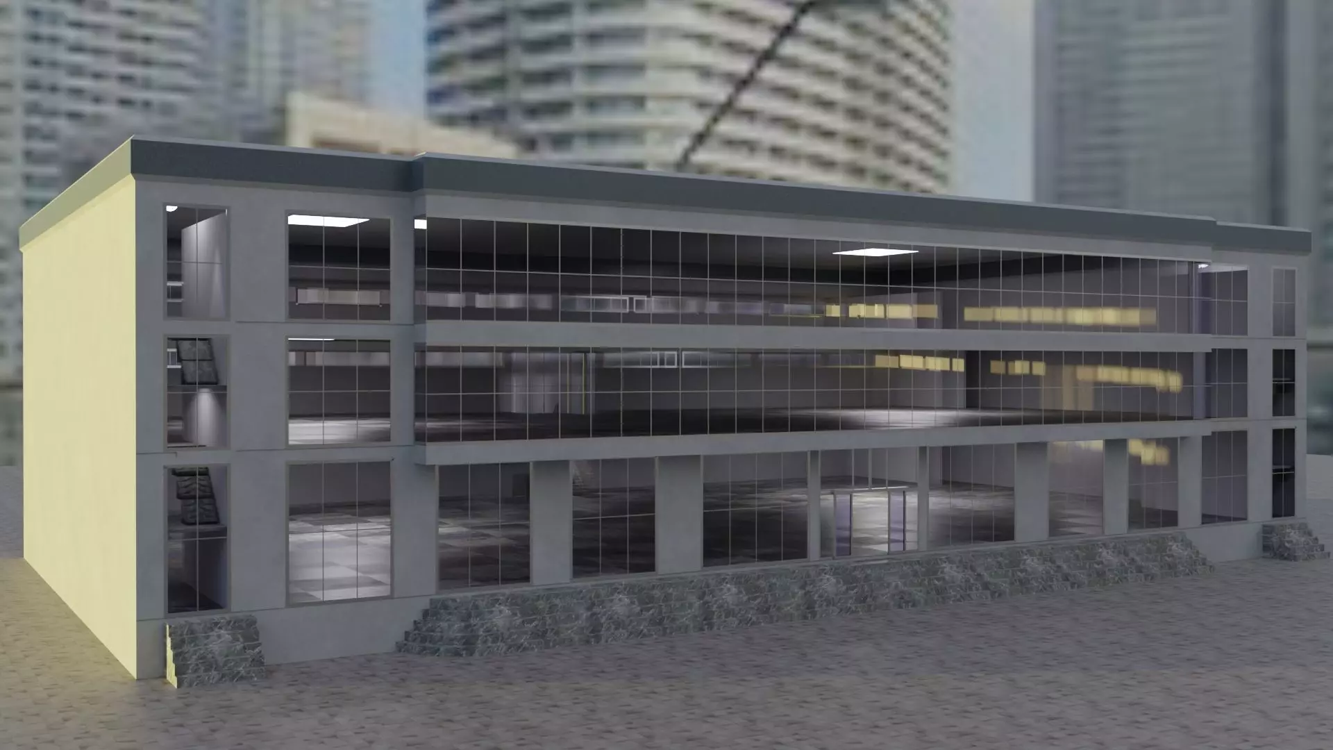 The model has material settings that define how surfaces look (color, shine, transparency, etc.).