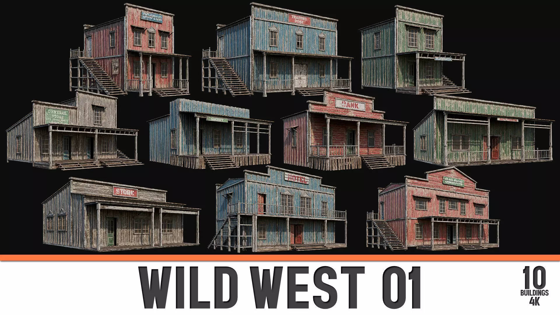 WILD WEST 01 with INTERIORS - 4K PBR TEXTURES HIGH QUALITY