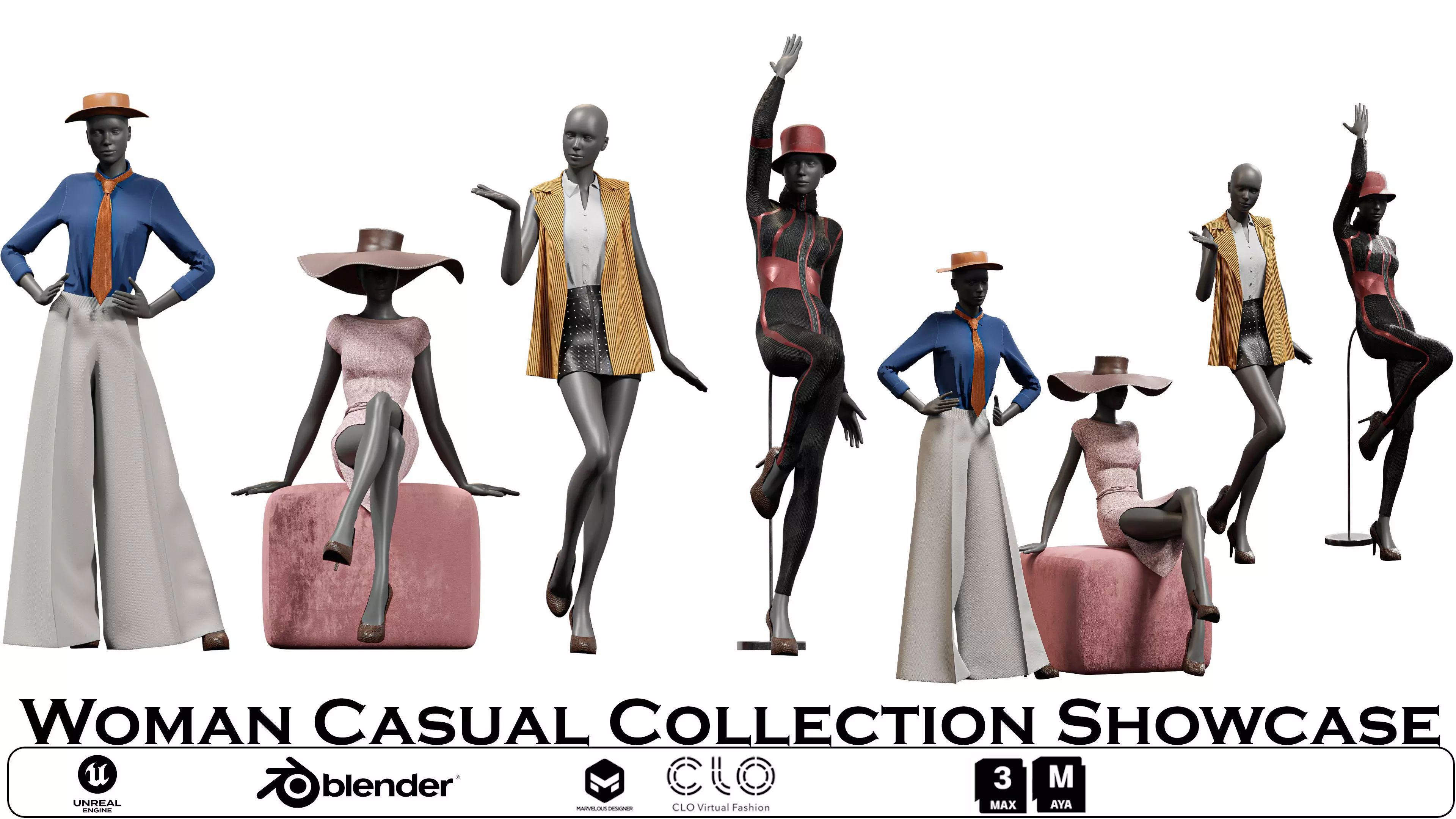 Woman Casual Showcase Fashion Mannequin Set Low-poly 3D model