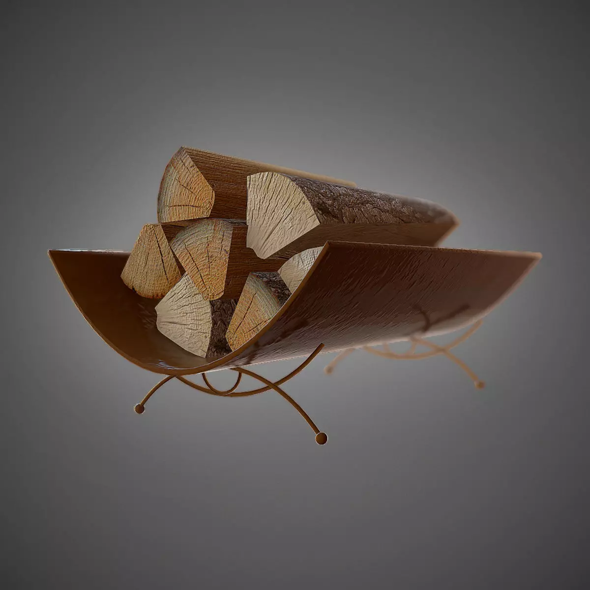 Low poly model of wood holder for fireplace. There are two different textures of wood pieces. The holder doesn't have a diffuse map. It uses a bronze material with only normal map texture, which is included in "Textures" folder.