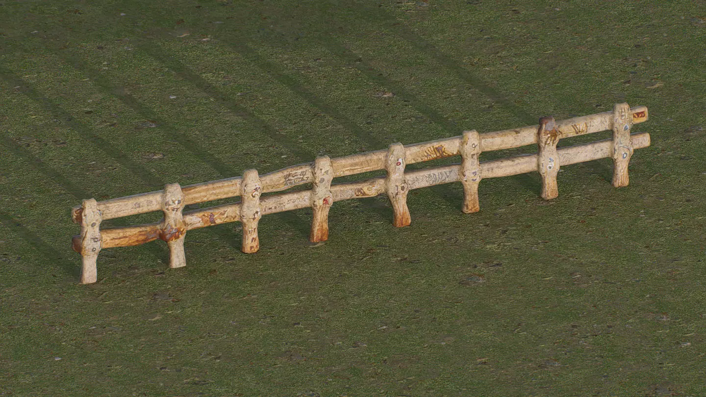 This 3D low-poly model features a rustic wooden fence, characterized by its weathered texture and uneven logs. The design captures the charm of a countryside setting, with visible wear and natural wood tones, making it ideal for rural or farm-themed game environments, animations, or landscape renders. Its simplicity ensures seamless integration into various outdoor scenes.