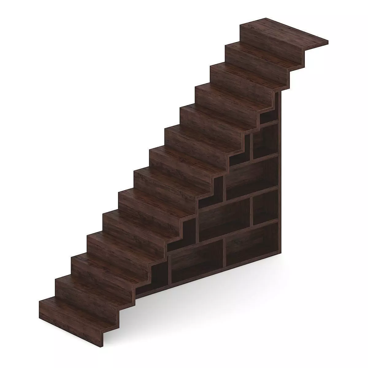 Wooden Stairs with Bookshelf 3D model