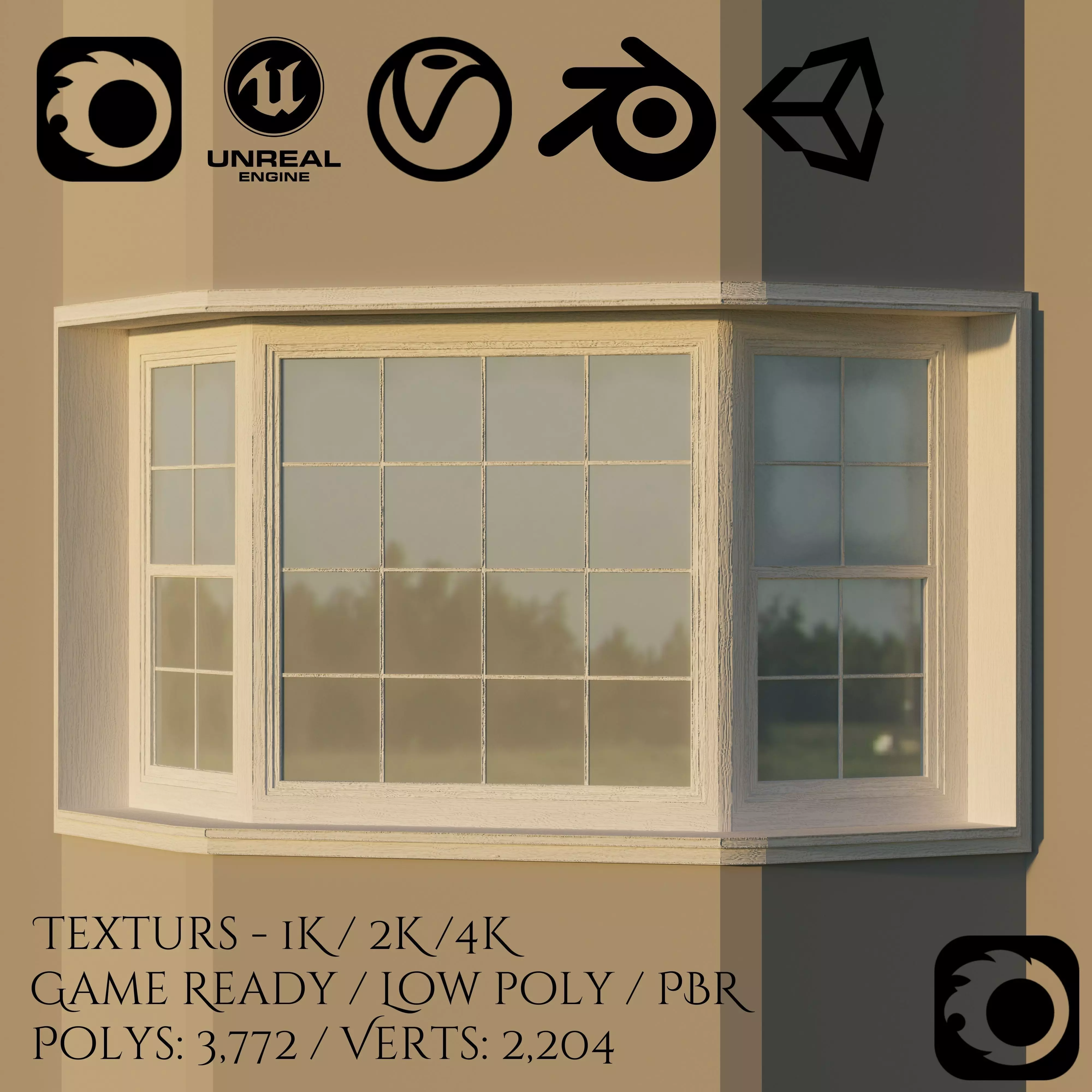 This optimized bay window 3D model is ideal for use in games, architectural visualization, and real-time simulations. Featuring a clean, low-poly structure and PBR textures in 1K / 2K / 4K, it offers flexible performance across a wide range of applications.