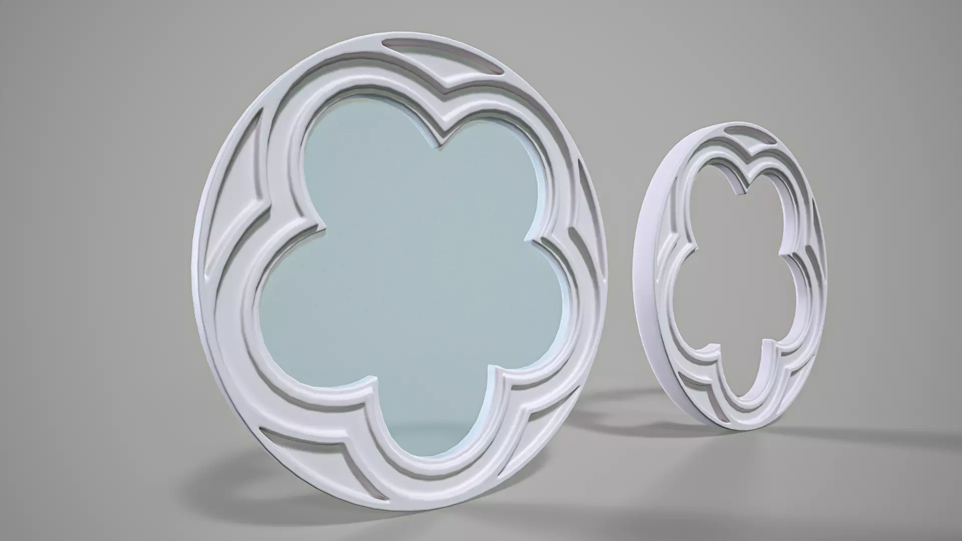 High poly, hard surface model of simple round Gothic window, radius 0.25 m. Subdivided with one iteration, ready for further subdivisions. You can add more iterations if you need. 1st model - different sides frame with glass. 2nd - symmetrical empty frame