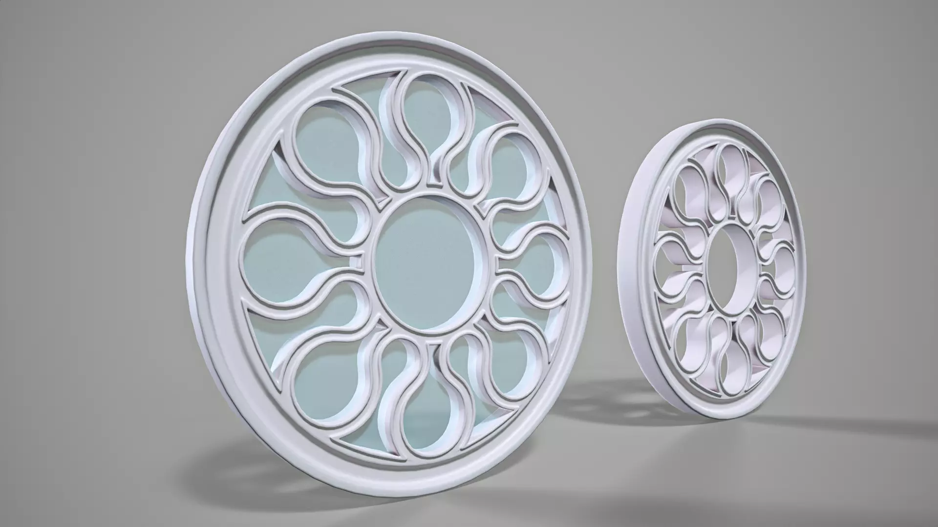 High poly, hard surface model of simple round Gothic window, radius 0.25 m. Subdivided with one iteration, ready for further subdivisions. You can add more iterations if you need. 1st model - different sides frame with glass. 2nd - symmetrical empty frame